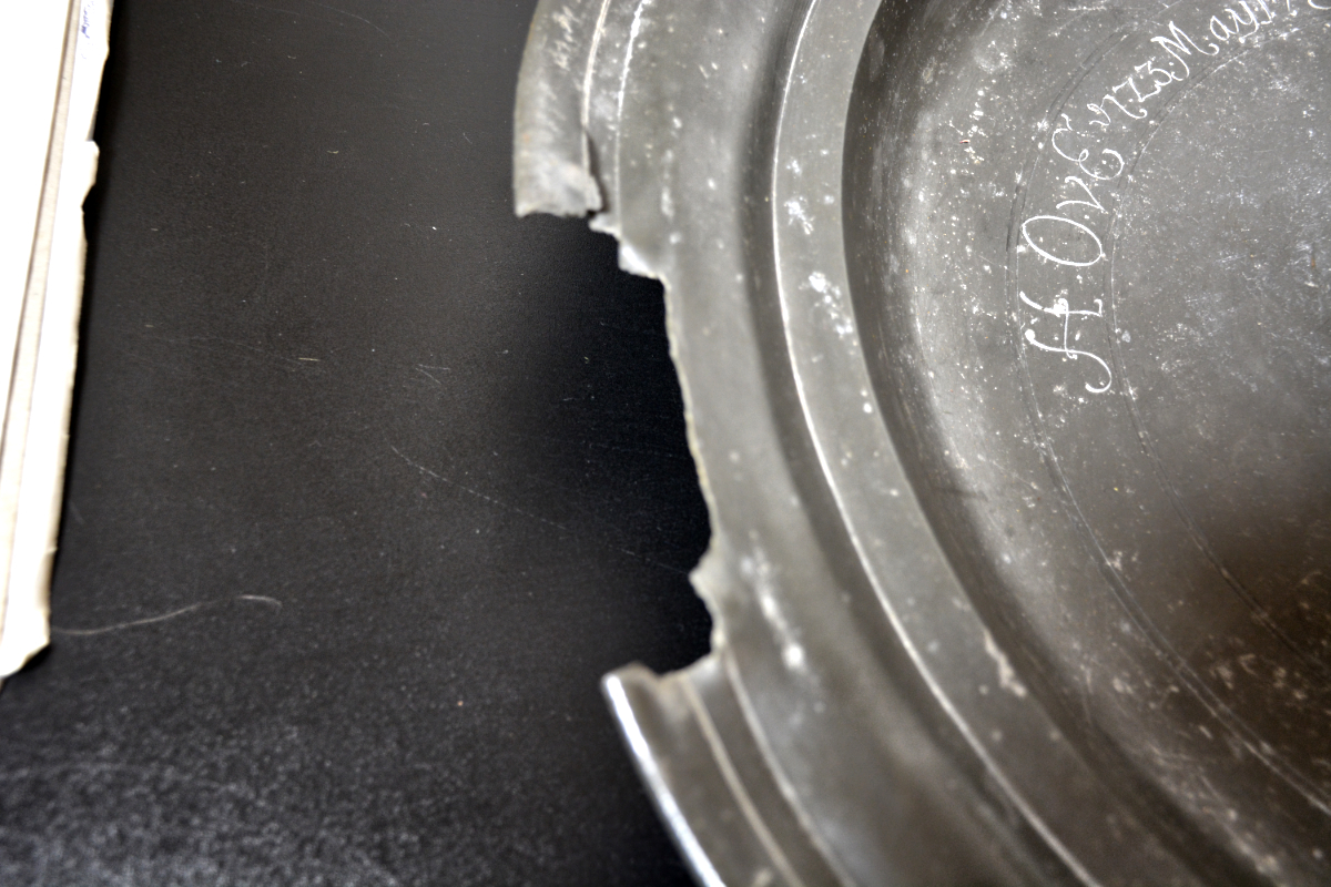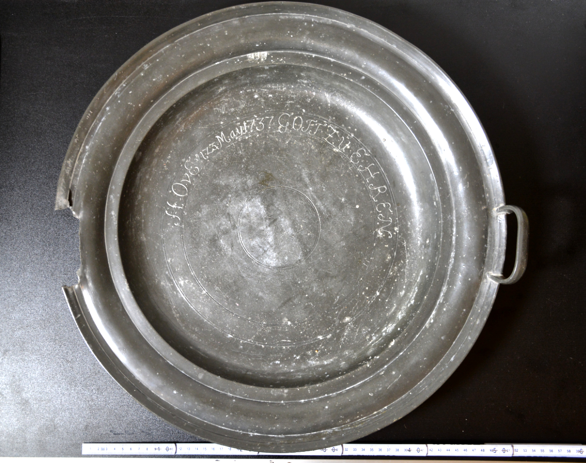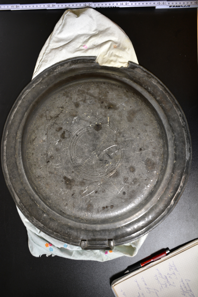 Objekt 1-25: große Taufschale, Zinn Höhe = 5 cm, Durchmesser = 52,5 cm